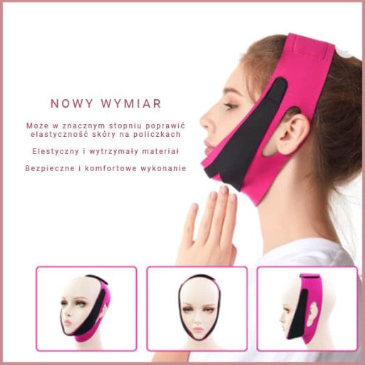 Bez operacji, bez bólu, ta maska liftingująca rozpocznie podróż do poprawy owalu Twojej twarzy! Wykonana z elastycznego, oddychającego, miękkiego materiału zapinanego na rzep, który poprawia komfort podczas noszenia i napinania szyi, policzków i podbródka. Daje naturalny efekt liftingu twarzy. Naciąga mięśnie, pomaga pozbyć się zbędnej tkanki tłuszczowej, wygładza zmarszczki, dzięki czemu poprawia jej kształt i nadaje upragniony V-shape. W trakcie noszenia maski naciskana jest tkanka twarzy przez co poprawia się krążenie krwi i napinają się mięśnie szyi, policzków i podbródka a Twoja skóra nabiera blasku.