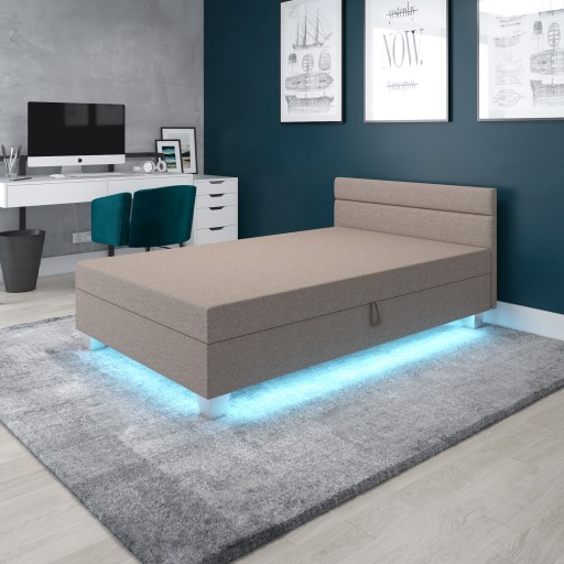 Tapczan jednoosobowy Matylda 110x200 to nowoczesne łóżko kontynentalne z materacem, dostępne w kilku rozmiarach.