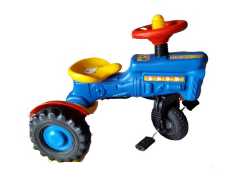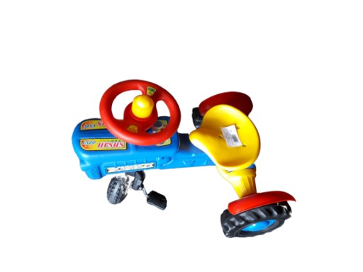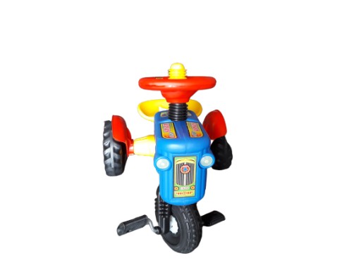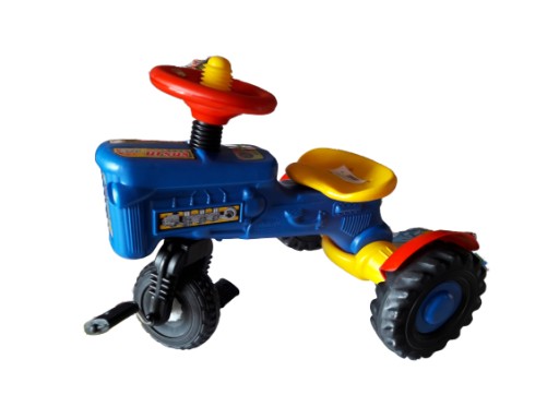 Traktorek ma dołączone pedały, dzięki czemu spełnia funkcje rowerka.