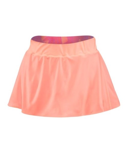 Spódniczka o regularnym kroju nie ogranicza ruchów. Miękki, lekki, przyjemny w dotyku materiał doskonale odprowadza pot, jest łatwy w praniu i szybkoschnący. Szerszy pas z elastycznym ściągaczem pozwala na odpowiednie dopasowanie do kształtu sylwetki. Ciekawym rozwiązaniem możliwość noszenia zarówno na prawej jak i na lewej stronie. Spódniczka ma dwustronną kolorystykę - z jednej strony uszyta z cienkiego, "śliskiego" materiału z drugiej zaś z delikatnej siateczki z atrakcyjną grafiką. Takie wykonanie zapewnia doskonałą wentylację i odprowadzanie wilgoci z dala od skóry. Płaskie szwy nie powodują otarć i podrażnień naskórka. Graficzne logo firmy w kontrastowej kolorystyce. Brak kieszeni i wewnętrznych spodenek.