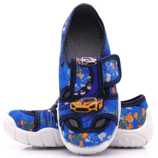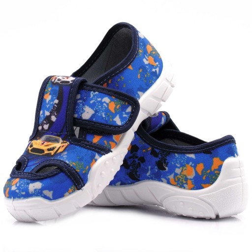 Komfortowe obuwie dziecięce wykonane z bawełnianych tkanin oraz elastycznej podeszwy. Polecane jest jako obuwie na zmianę do przedszkola, do szkoły lub po domu, lecz podczas suchych, ciepłych dni może być użytkowane także na zewnątrz.