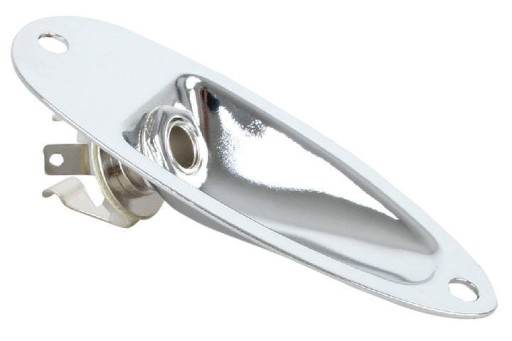 Gniazdo jack 6,3 mm mono z maskownicą (łezką) Typ gniazda: ST montażowe gitarowe, Kolor gniazda : srebrny, Kolor maskownicy :srebrny