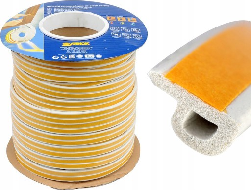Uszczelka samoprzylepna wykonana z gumy w kształcie litery P. Idealnie chroni przed wiatrem, zimnem, kurzem, hałasem, owadami. Przeznaczona do szczelin od 3 mm do 5 mm.