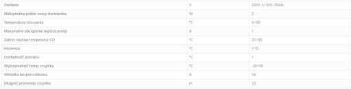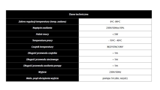 - Zakres regulacji temperatury (temp. wyłączenia): 0°C - 99°C,
