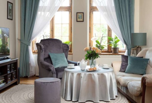 Zastosowanie kółek zapewnia zasłonie elegancki wygląd, ładne układanie się tkaniny w głębokie fałdy, szybki montaż polegający na nałożeniu na karnisz rurowy oraz wygodę w użytkowaniu poprzez łatwe przesuwanie na rurce karnisza.