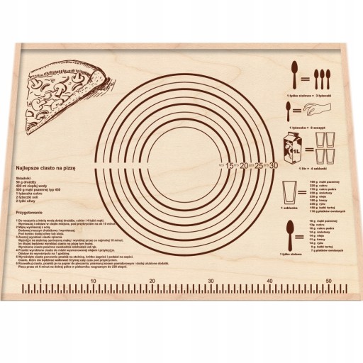 - miara oraz średnice użyteczne podczas wałkowania ciasta
