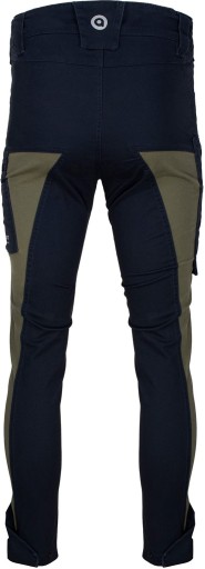 - Sześć obszernych, praktycznych kieszeni – dwie kieszenie przednie, duża kieszeń na lewej nogawce zapinana na zamek z mniejszą otwartą, kieszonka na prawej nogawce na narzędzia