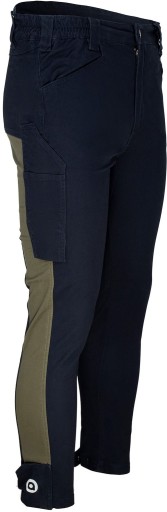 Innowacyjne spodnie robocze o kroju Slim Fit, wykonane z rozciągliwej, przewiewnej oraz dynamicznej tkaniny powstałej w wyniku połączenia wysokiej zawartości bawełny oraz elastanu. Mocne, miłe w dotyku o gramaturze 260-275 g/m2. Gwarantują doskonały komfort oraz swobodę ruchów, nawet w upalne, letnie dni. Możliwość regulacji szerokości dołu nogawki, dzięki zastosowaniu patki zapinanej na napy. Wyjątkowo trwałe dzięki podwójnym przeszyciom, wykonano miękki splot skośny.