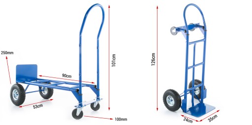 Zafunduj sobie odpoczynek dla swoich pleców - mamy dla Ciebie uniwersalny wózek transportowy i młynarkę, czyli produkt 2w1. Nasz produkt wykorzystasz jako 4-kołowy wózek transportowy do przewożenia ładunków, a gdy zajdzie taka potrzeba wykorzystasz go również jako praktyczna młynarka na pompowanych kołach. Ten uniwersalny produkt to idealne rozwiązanie gdy potrzebujesz zarówno wózka transportowego jak i młynarki.