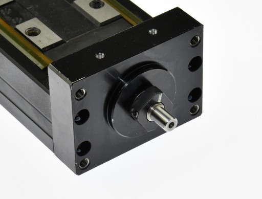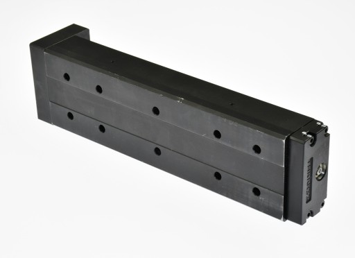 Używany, całkowicie sprawny suport napędu liniowego - kompaktowy złożony z prowadnic liniowych i śruby napędowej z nakrętką. Suport renomowanej firmy THK, oznaczenie AR10B01668. Precyzyjna śruba kulowa o średnicy 10mm, jej skok to 8mm/obrót. W jednym wózku obsadzona jest nakrętka napędu, drugi wózek nie jest spięty ze próbą. Zestaw pochodzi z demontażu maszyn produkujących elektronikę w clean room. Żadnego zużycia.