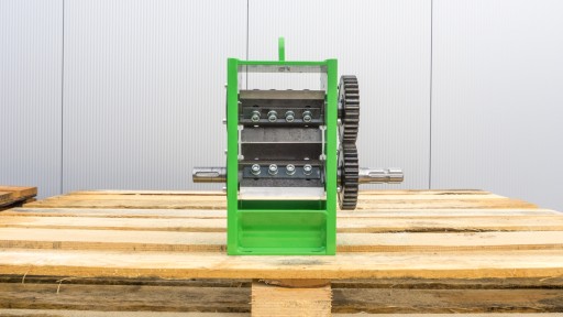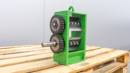 Dwuwalcowy mechanizm tnący do gałęzi oraz innych odpadów drewnianych.