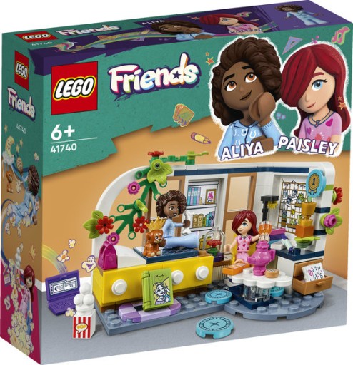 Dzieci mogą wymyślać własne historie, bawiąc się zestawem LEGO® Friends Pokój Aliyi (41740). Zawiera on mnóstwo elementów do odkrycia, gdy Paisley i Aliya piszą historyjki przed pidżama party. Pokój odzwierciedla zainteresowania Aliyi poprzez akcesoria, w tym wypracowania szkolne, fotel biurowy, laptopa, książkę, lampę i puchar. Dzieci docenią też ukryte detale, na przykład złą ocenę na sprawdzianie, którą Aliya schowała pod stosem piątkowych wypracowań! Może Paisley pomoże jej zrozumieć, że nie powinna być wobec siebie taka wymagająca. Gdy przyjdzie czas na relaks, przyjaciółki mogą obejrzeć film na dużym ekranie lub pobawić się zabawkami ze szczeniaczkiem.