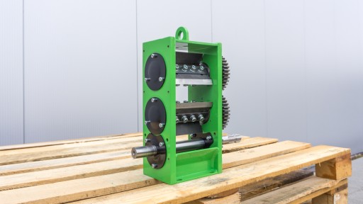 Dwuwalcowy mechanizm tnący do gałęzi oraz innych odpadów drewnianych.