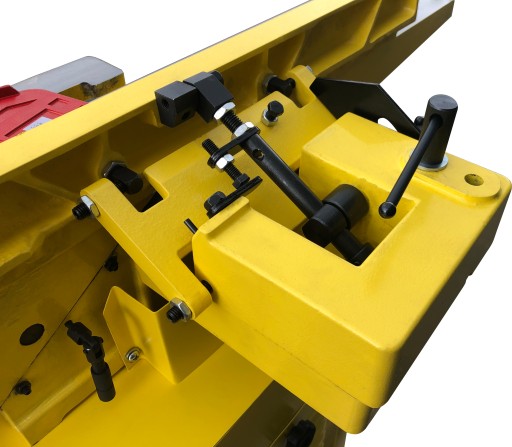 ✅ Prowadnica równoległa ułatwia równe prowadzenie obrabianego materiału po głowicy z nożami. Dodatkowym plusem jest możliwość pochyłu prowadnicy do 45 stopni.