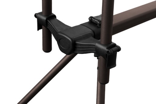 Wyjątkowy model rod poda, który łączy w sobie nieskończenie wiele modyfikacji wymiarowych. W porównaniu z klasyczną dwukierunkową regulacją nóg w lub wysokością samych buzz barów, stojak ten posiada dodatkowo możliwość przesuwania osiowego nóg. Dzięki temu użytkownik może przenieść swoją bazę wszędzie tam, gdzie mu odpowiada, w zależności od terenu. Istnieje również możliwość regulacji długości rod poda. Model do BBQ jest bardzo stabilny a każdy jego szczegół jest doskonale opracowany. Podstawa szkieletu wykonana jest z profili aluminiowych łączonych za pomocą mocnego tworzywa ABS. Każdy element konstrukcji został przetestowany pod kątem wielu cykli otwierania / zamykania. Niezwykle długie nogi teleskopowe są również niekonwencjonalne, dzięki czemu model ten m można podnieść o poziom wyżej w porównaniu do standardowych modeli. Dzięki swojej wszechstronności wymiarowej można z niego zrobić niski, kompaktowy stojak. Model BBQ cechuje bardzo niska waga i idealne wymiary transportowe. Częścią zestawu jest pokrowiec transportowy z piankowym wypełnieniem.