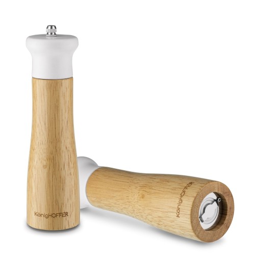 Biały MŁYNEK DO PIEPRZU I SOLI stal bambus PREMIUM
