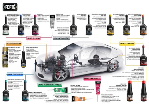 Dodać 1 x 400ml Forté Diesel Turbo Cleaner razem z 1x 400 ml Forté Advanced Diesel Fuel Conditioner do max 100 litrów paliwa lub 0,4 % pojemności baku.