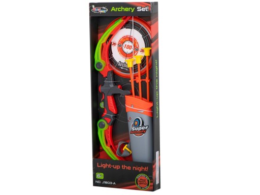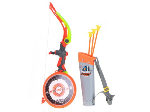 Zabawkowy łuk jest idealną rozrywką dla dzieci, które marzą o tym, by wcielić się w rolę łucznika. Łuk naciągany jest przy pomocy gumy, a każda ze strzał zakończona jest gumową końcówką.
