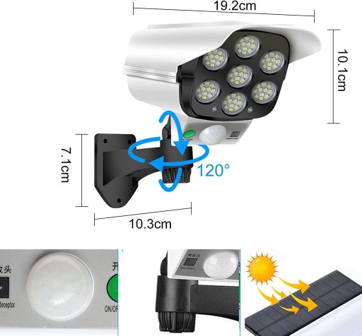 ✅ Wysokiej jakości atrapa kamery do monitoringu. Sprawia wrażenie istnienia realistycznej kamery zasilanej na baterie słoneczne.