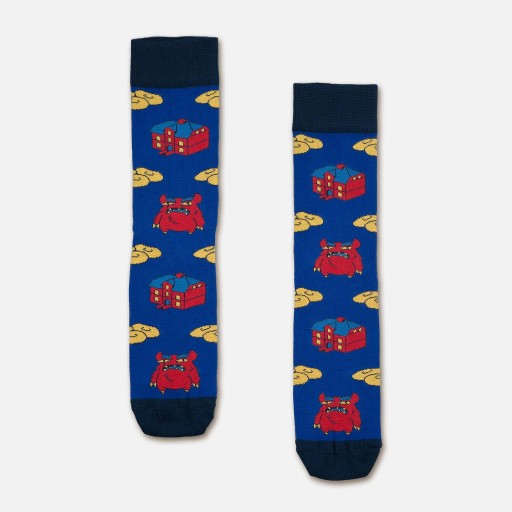 Skarpety z wybranymi symbolami z naszej śląskiej gry karcianej QKaj. Na Gumiklejzach znajdziesz tytułowe gumiklejzy znane jake kluski śląskie, jest tak też familok, a więc kamienica, oraz Bebok czyli śląskie straszydło!
