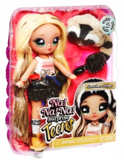 Poznajcie Gretchen Stripes, fantastyczną lalkę z serii Na! Na! Na! Surprise Teens z niepowtarzalnym stylem oraz osobowością. Ta piękna modna lalka inspirowana jest szopem i zabierze dzieci do świata kreatywnej zabawy! Śliczna Gretchen Stripes zachwyci swoją stylizacją, piękną buzią oraz burzą niesamowitych blond włosów!