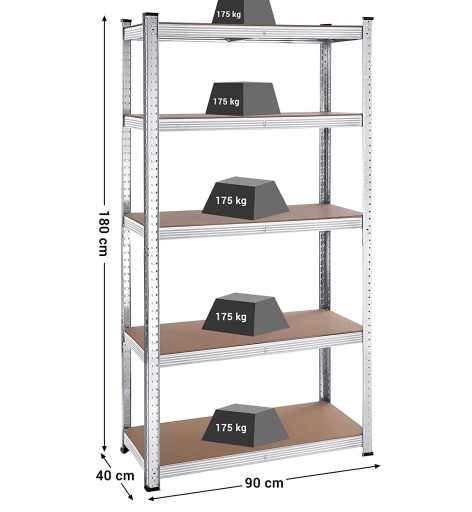 Regał składa się z 5 półek, a jego maksymalne obciążenie to aż 875 kg!