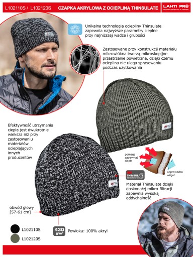 Czapka akrylowa z ociepliną thinsulate L102120S LahtiPro