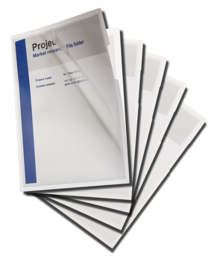 - Na froncie przezroczysta kieszeń opisowa formatu A4. Typ „L” – otwarta na górze i wzdłuż brzegu posiada specjalne wycięcie na palec ułatwiające umieszczanie dokumentów.