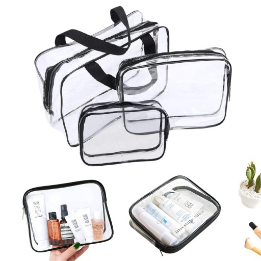 KOSMETYCZKA PRZEZROCZYSTA ZESTAW 3w1 DO SAMOLOTU POJEMNA PCV