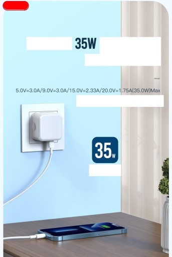✔ napięcie wyjściowe USB type-C 1 (max. 35W): 5V - 3A | 9V - 3A | 15V - 2,33A | 20V - 1,75A. PPS: 3,3-11V - 3A