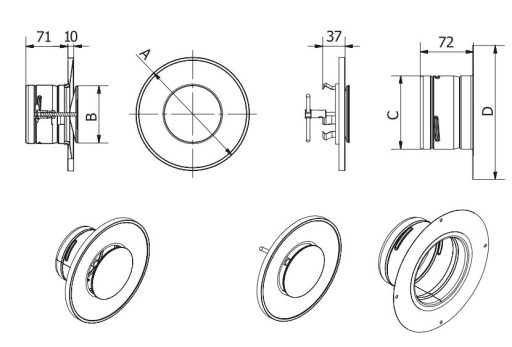 Anemostat okrągły ASV stanowi estetyczne zakończenie systemów wentylacyjnych, rekuperacyjnych oraz rozprowadzania ciepłego powietrza z kominków.