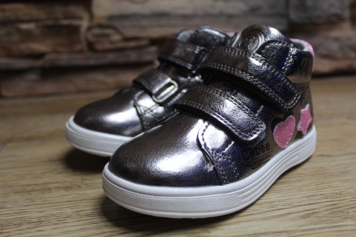 Śliczne półbuty dziewczęce marki Clibee w kolorze szarym z dodatkiem różu. Zapinane na rzep. Wykonane z wysokogatunkowej skóry ekologicznej. Wygodne i komfortowe w użyciu. Bardzo solidne.