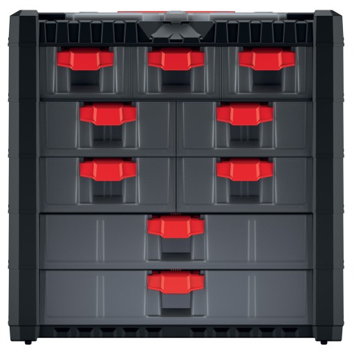 - Zaprojektowany z myślą o przechowywaniu w jednym miejscu dużej ilości drobnych elementów w pojedynczych szufladach