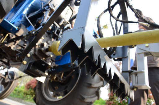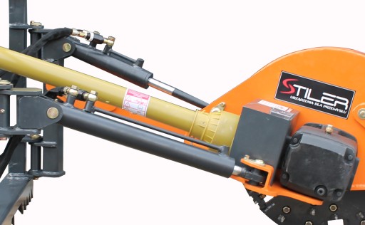 - Zasilanie odbywa się poprzez wałek odbioru mocy (WOM), zaś sterowanie ruchem na boki i w pionie realizowane jest przez układ hydrauliczny ciągnika poprzez dwa mocne siłowniki.