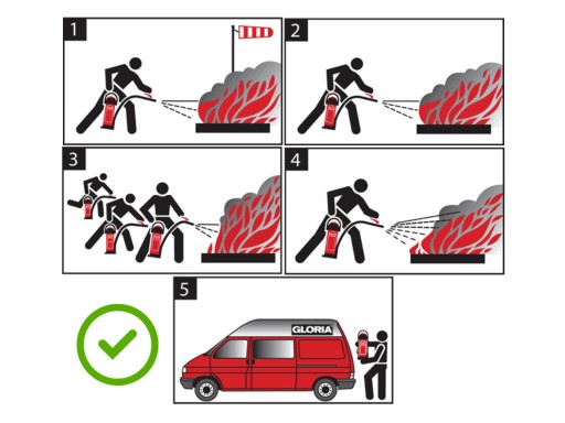 5. Po każdym wykorzystaniu niezwłocznie powinno się oddać gaśnicę do serwisu, gdyż tylko sprawna gaśnica pomoże przy następnym pożarze. Tylko autoryzowane serwisy posiadają oryginalne części i są w pełni przeszkolone do konserwacji gaśnic firmy Gloria.