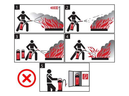 Prawidłowe użycie gaśnicy - objaśnienie: