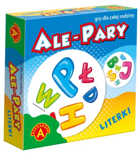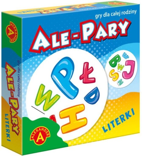 Ale Pary – Literki” to szybka, prosta gra karciana w której wygrywa ten kto wykaże się największą spostrzegawczością. W opakowaniu znajdziemy zestaw 31 kart z 6 obrazkami przedstawiającymi literki. Dwie dowolne karty zawsze mają po jednym wspólnym obrazku, ale żeby nie było zbyt łatwo, obrazki te często mają różną wielkość. Gra polega na jak najszybszym znalezieniu wspólnego obrazka. W zależności od wariantu wygrywa ten, kto zdobędzie najwięcej kart, bądź jak najszybciej pozbędzie się wszystkich. Gra na aspekt edukacyjny, może być wspaniałym pretekstem do nauki literek. Poręczne opakowanie gry, pozwoli cieszyć się zabawą w dowolnym ść opakowania:karty koła - 31 szt., instrukcja