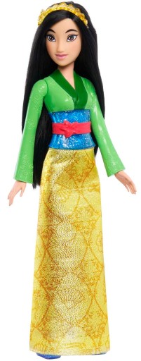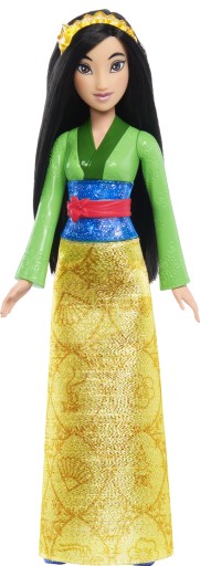 Poznaj tę lalkę Mulan, zainspirowaną odważną księżniczką o silnej woli z klasycznego filmu Disneya. Ta ruchoma modna lalka jest pokazana w błyszczącym stroju i z akcesoriami, takimi jak buty i tiara. W swoim charakterystycznym wyglądzie z filmu ta lalka Mulan jest gotowa na każdą przygodę! Lalka nie może stać samodzielnie. Kolory i zdobienia mogą się różnić.