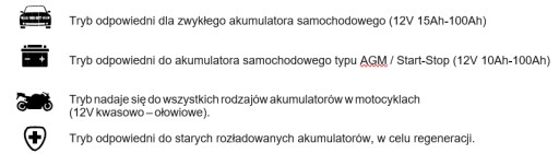 Prostownik ma specjalny tryb pracy, przeznaczony do ładowania akumulatorów dla samochodów z silnikiem START / STOP. Coraz więcej samochodów posiada funkcję wyłączania się silnika podczas postoju. Akumulatory w tych samochodach wymagają specjalnego ładowania.