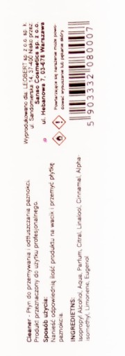Cleaner jest preparatem, który odtłuszcza i dezynfekuje płytkę paznokcia zapewniając długotrwałość lakieru hybrydowego. Co więcej produkt ten usunie lepką warstwę dyspersyjną ostatniej warstwy stylizacji.