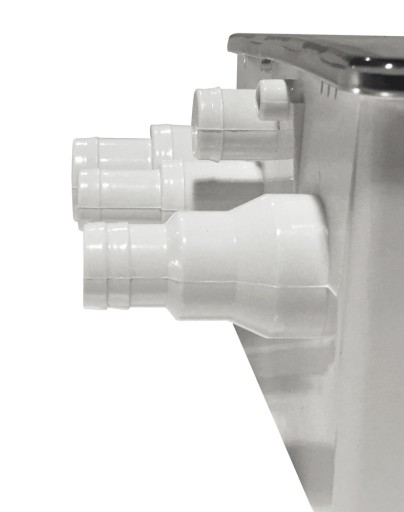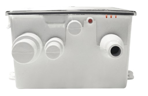 Pompa prysznicowa z łatwo zdejmowalną uszczelnioną pokrywą. Wyjście pompy z zaworem zwrotnym, zapobiega cofaniu się wody do studzienki.