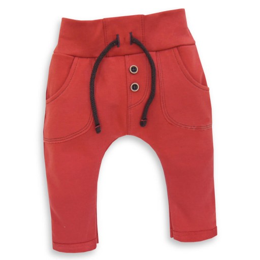 Praktyczne spodnie niemowlęce w nowej odsłonie kolorystycznej, z ozdobnym sznureczkiem na przodzie. Tym razem do grupy wygodnych spodni marki Mrofi, dołącza modny kolor Chilli - lekko zgaszonej czerwieni. Spodenki zostały uszyte w Polsce, z elastycznej dzianiny 95% bawełna 5% elastan. Spodnie mają kieszenie po bokach, i eleganckie dwa guziczki z przodu. Elastyczna gumka w pasie, sprawia że ubranko utrzymuje się na swoim miejscu. Spodenki są bardzo wygodne i praktyczne, nie krępują ruchów dziecka. Mogą być elementem eleganckiej stylizacji, lub spodenkami na co dzień.