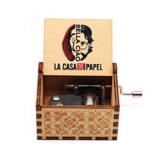 Drewniana pozytywka na korbkę z melodią z serialu DOM Z PAPIERU. Pokręć korbką i usłysz swoją ulubioną melodię. Stylowy gadżet, który upiększy wnętrze Twojego domu.