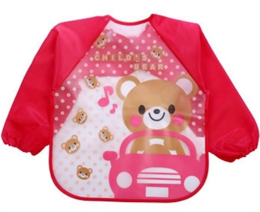 Wytrzymały śliniak z rękawkiem o ciekawych wzorach, wykonany z cienkiej ceratki EVA, która zabezpiecza ubrania dziecka przed zabrudzeniem podczas posiłków i zabawy.