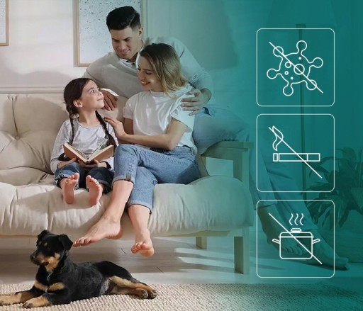 - ✔️Odświeżania pomieszczeń poprzez eliminację nieprzyjemnych zapachów i grzybów,.