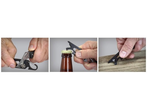 Gadżet został także wyposażony w śrubokręt płaski, krzyżakowy, otwieracz do butelek oraz zestaw kluczy sześciokątnych, przydatny szczególnie dla miłośników jednośladów.