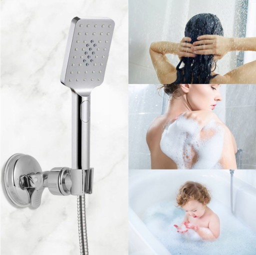 Uchwyt na słuchawkę prysznicową z przyssawką uniwersalny srebrny praktyczny