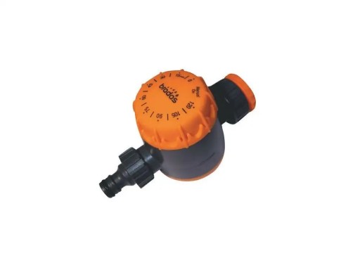 Zegar przepływu wody 0-120 minut. Wykonany z wysokiej jakości tworzywa. Łatwy w obsłudze, pozwala zwiększyć oszczędność wody. Nie posiada elektroniki i nie potrzebuje baterii. Zaprojektowany został tak, aby odcinał dopływ wody po zakończeniu ustawionego czasu zraszania. Maksymalny ustawiony czas to 2h. Posiada również funkcje ciągłego przepływu wody. Jest wyposażony w przyłącze do kranu 1" z redukcją na 3/4". Produkt dostępny na blistrze. Kolor pomarańczowo-grafitowy