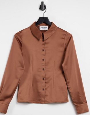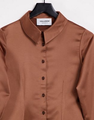 РУБАШКА ЖЕНСКАЯ АТЛАСНАЯ КОРИЧНЕВАЯ, ОДНОРОДНАЯ, 40 Л 1 VAF