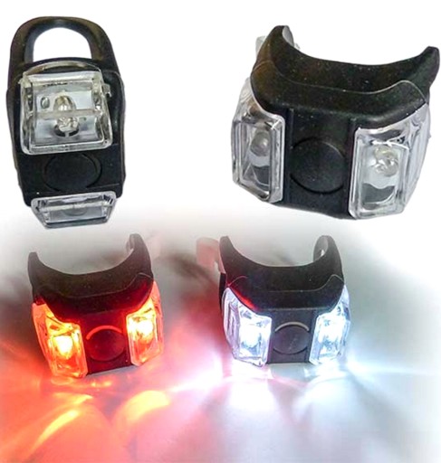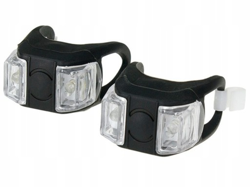 Zestaw oświetlenia rowerowego składający się z lampy przedniej oraz lampy tylnej marki X-Light. Silikonowe lampki dostępne w kolorach: zielonym-lime, niebieski, czarny, wyposażone w dwie diody LED każda. Lampa X-Light XC-100F o zastosowaniu przednim posiada diody w kolorze białym, a ta o zastosowaniu tylnym w kolorze czerwonym. Lampki posiadają 3 tryby świecenia: światło stałe, światło pulsacyjne – 2 rodzaje. Do montażu oświetlenia nie wymagane są narzędzia. Lampki posiadają uniwersalne uchwyty które pasują do wszystkich rodzajów kierownic oraz sztyc rowerowych. Zasilane są bateriami CR2032x2.